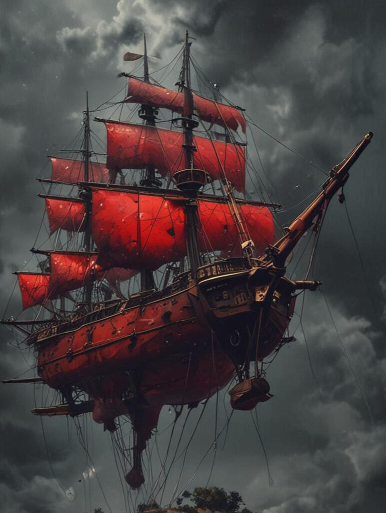 Captained by Ekon Takeo, The Crimson Phantom earned its name from vanishing into the mist after bloody battles, leaving behind only whispers of its existence. Sailors speak of its ghostly red sails, visible only under moonlight, and the eerie silence that follows in its wake.