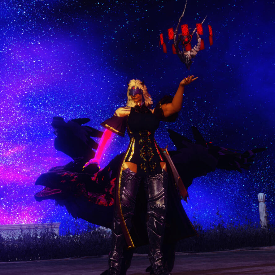 An Astrologian who pulls from the darkness of the sky instead of the light, Jackie prides herself on her work as a goldsmith and chef most of all. With her familiar, Nelithoyubb, by her side the hrothgar is a force not to be reckoned with...if only because the creature keeps screaming about taking teeth and eating names.