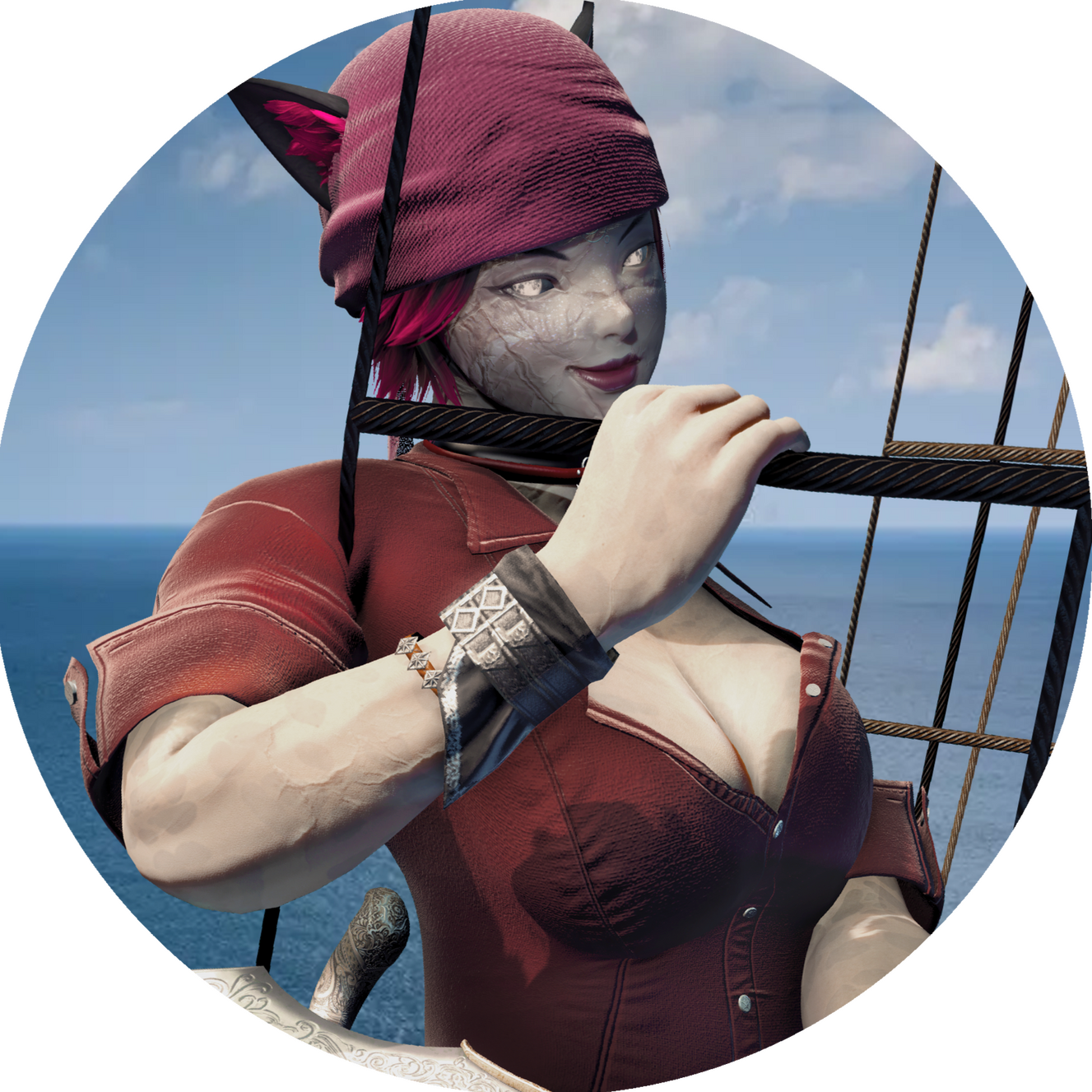 The Crimson Phantom’s beast-handler and apothecary, Tsu mends both hide and heart with the same gentle hands. She tends to wounds, tempers storms, and softens the edges of ship and soul alike. Some call her too trusting—but when the sea rages, she’d throw herself into its depths without hesitation for the sake of her crew.